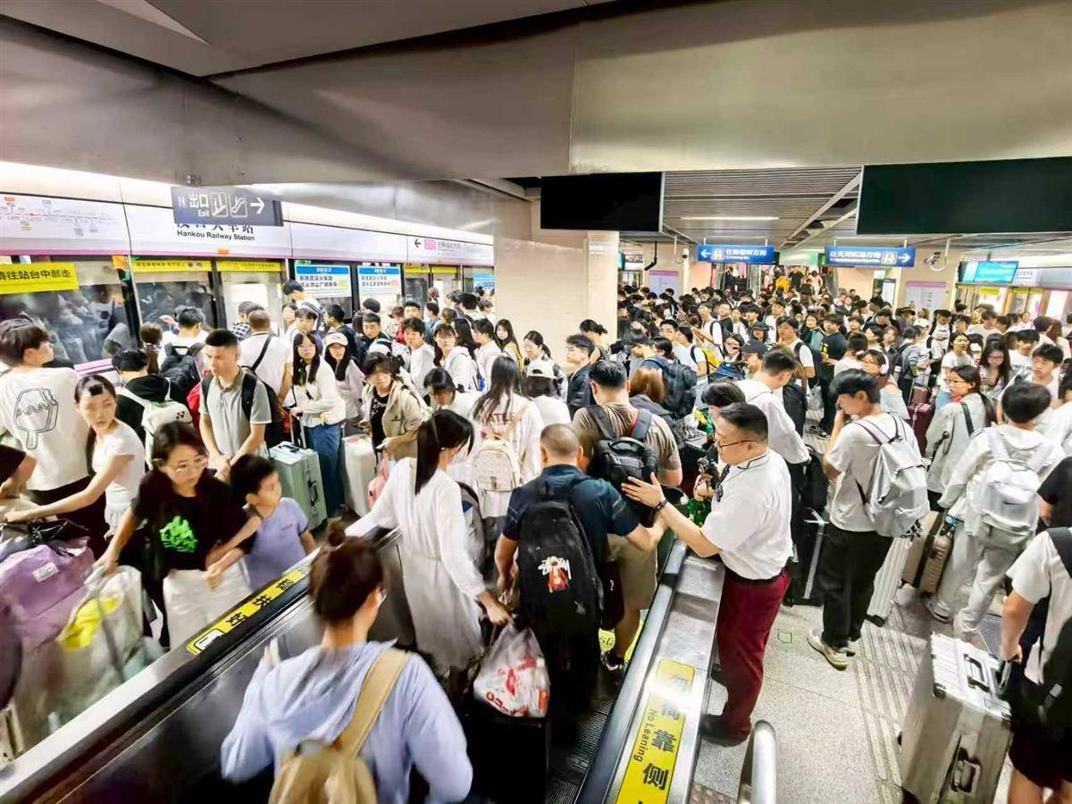 10月7日至8日迎来集中返程高峰,汉口火车站、武汉火车站、武昌火车站、武汉东站、天河机场等“四站一场”接驳地铁站客流持续攀升。8日中午,2号线汉口火车站免安检区域随列车密集到站而迅速拥挤。4/7号线武昌火车站在高峰时段引导部分乘客换乘7号线疏散;4/5/19号线武汉火车站通过线路分流与临客加开相结合,高效疏运到站旅客。
